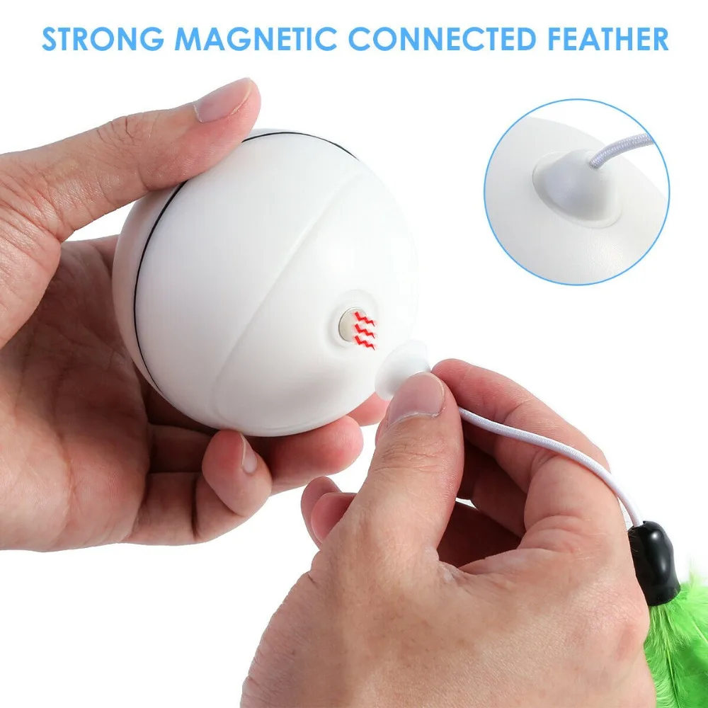 A added detachable magnetic feather which can self-rotation together with the feather when placed on the floor to catch kitties attention.